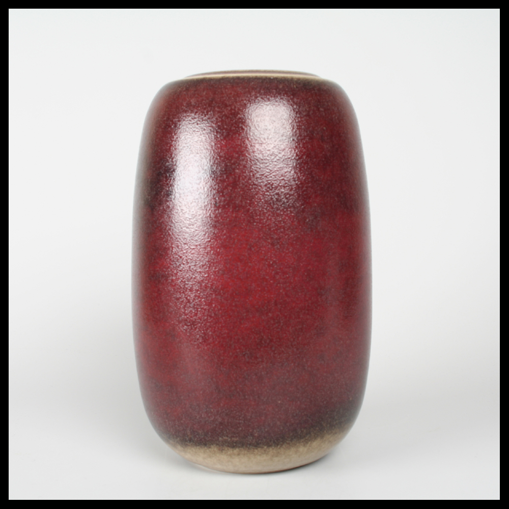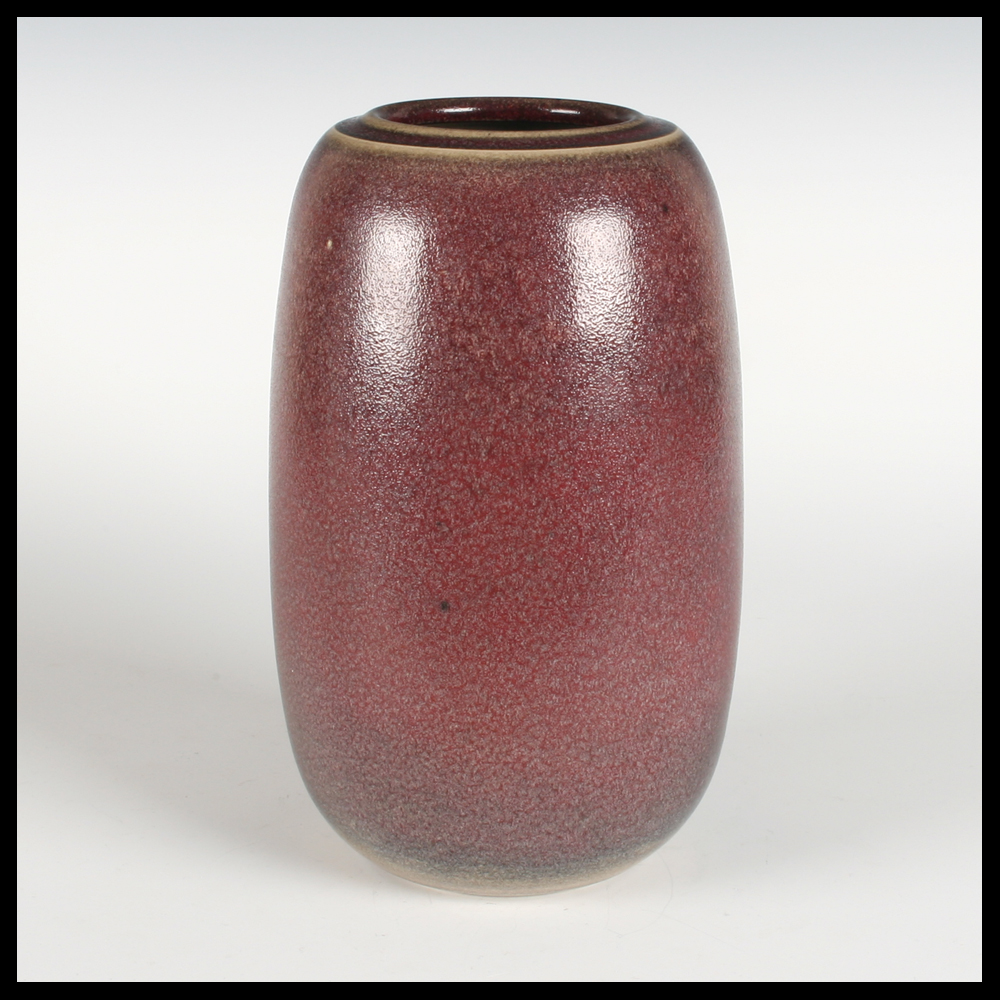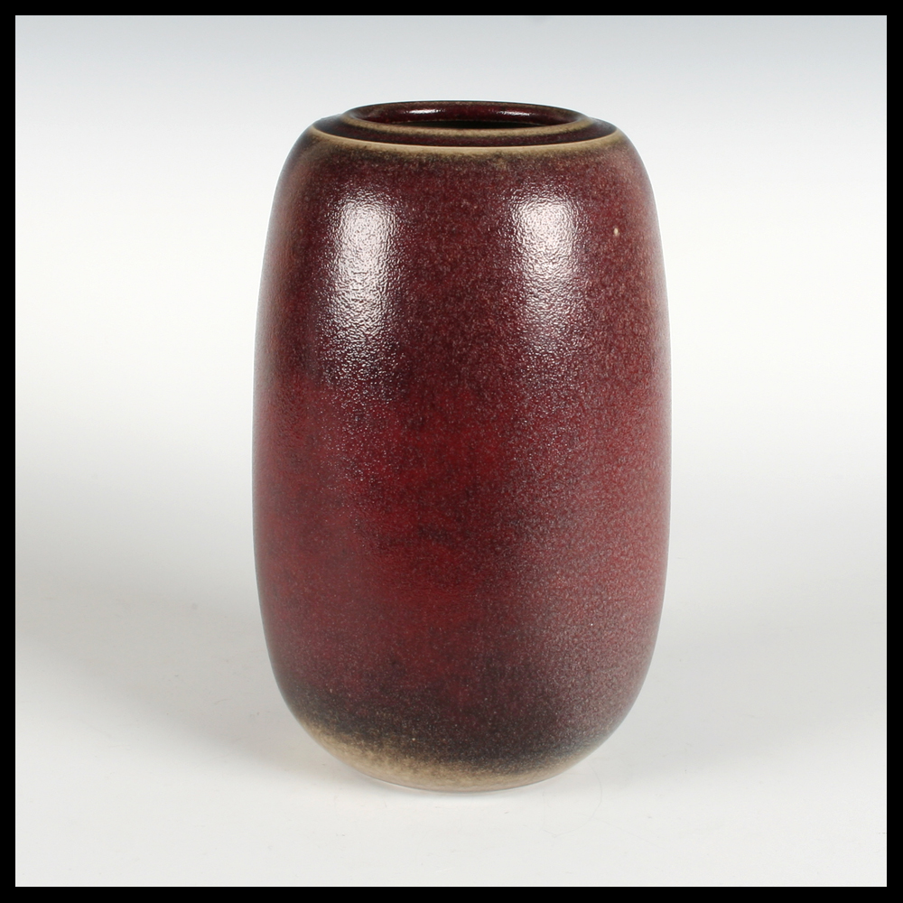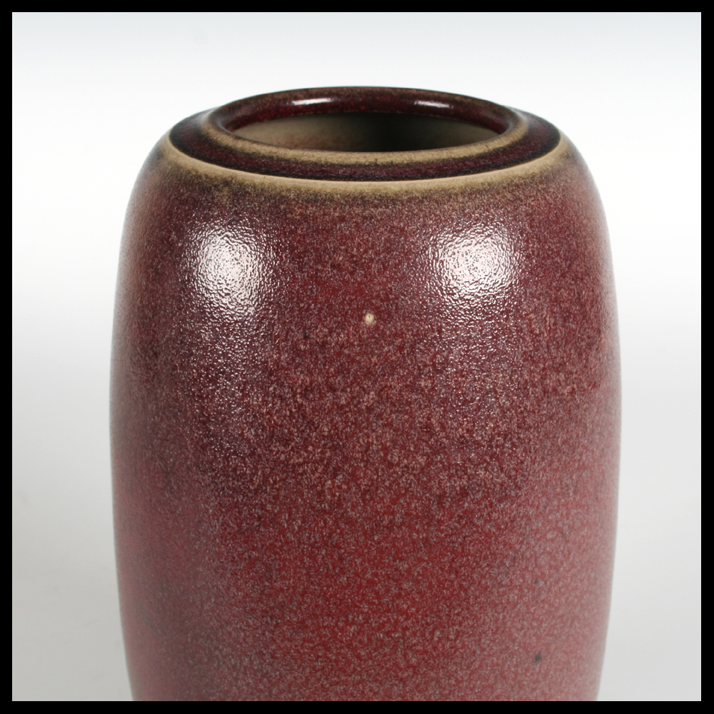 Von Kunsttöpfer Edouard Chapallaz, eine hohe Vase in bordeaux rote Glazur, Steinzeug, 1980s. Dieses Stück wurde von ersten Eigentumer gekauft worden bei Kösters Kunstkammer in Mönchengladbach. Achtung: die Glazur ist an eine Seite kräftiger rot.
