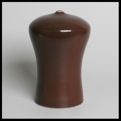 Robert Deblander (FR), hohe Schulter vase in sehr ausgewogenen Form, japanischen Stil mit kleine Mund, handgedreht, Porzellan, braune glänzende Glazur.