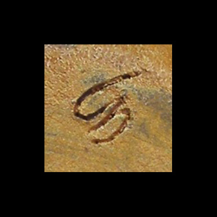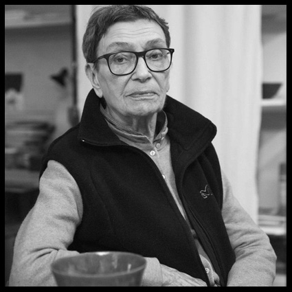 Claire L. Debril is born in Arpajon – Essonne (France) in 1927. In 1962 she started her activities in the workshop of Bernard Soleil in Paris. In 1972 she opens her own workshop in Vincennes. She is “in residence” at Faiencerie de Gien between 1970 and 1974. Claire Debril has produced a small oeuvre of perhaps 600 pieces. She is considered as one of the most important French Post-War ceramists. Signature : CL or CLD Pictures : Portrait Claire 2014 (photo Michel Lunardelli); Portrait Claire 2008 (photo Michel Lunardelli); Claire at work during her period at Faiencerie de Gien (source Faiencerie de Gien); Pot (source Galerie Ancienne Poste); Vase (source private collection Paris); bowl (source ceramiques-contemporaines-fr), incised signature (source Galerie Sepia).