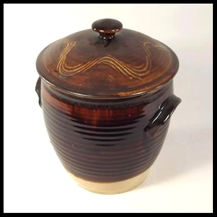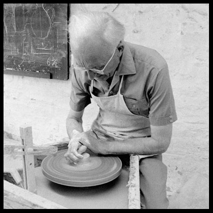 Michael Leach is Bernard Leach’s younger son, born in 1913, two years after his brother David. He spent a short time at the Leach Pottery before serving in the army during the Second World War. His pottery talents were not wasted in the army, he set up two potteries in East Africa to make utensils for the troops. After the war he worked with Agnete Hoy at Buller’s, returning to Leach Pottery in 1948. In 1955 he left to set up Yelland Pottery at Fremington, Devon, which he worked until his retirement in 1984. He died the following year. Yelland Pottery In 1955 when Michael Leach and his brother David decided to part company with the Leach Pottery at St Ives, David set up the Aylesford Pottery in Kent and Michael started the Yelland Manor Pottery, better known as just Yelland Pottery, at Fremington in North Devon. He continued to work the pottery until shortly before his death in 1985. He was helped, at one time by Frannie, who married Philip, Michael’s son. The couple now run the nearby Springfield Pottery (texst: The Pottery Studio). Pictures : Michael Leach (source Tumblr); lidded pot (source The Saleroom); Jug (source The Pottery Studio).
