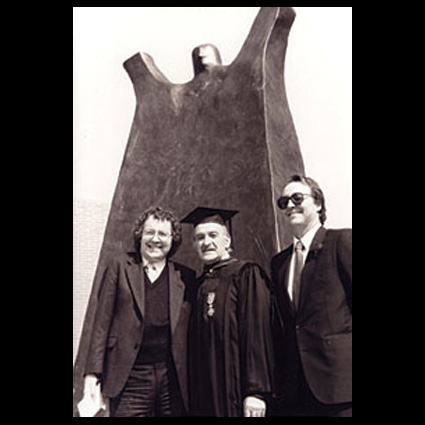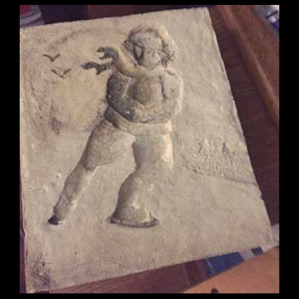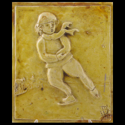 Ben (Bernardus Matheus Anthonius) Weber is born on March 29, 1912 in Tilburg in the Netherlands. He follows a study at the Royal Academy of Fine Arts in Antwerp and after one year at the Arts and Crafts School in Den Bosch. He married Johanna Cornelia Craanen. Weber shows up in Apeldoorn immediately after World War II. He lives here from 1946 to 1953. He is already 34 years. The war has definitely influenced his career. Here he initially works as an apprentice to Johannes Henricus Andrée. And in seven years time one can learn to become a good thrower. Weber must have been an assistent of the aging Hein Andrée. He makes mainly ecclesiastical utensils. He is a sculptor, draughtsman, painter and pastellist. On August 4, 1953 he leaves for Thousand Oaks, Los Angeles California. Here he is lecturer and later professor at California Lutheran University in Thousand Oaks, Los Angeles. He retires from the University in 1983. In 1977 he becomes a Knight in the Dutch Orde of Orange-Nassau. This attribution has probably to do with the fact that Queen Wilhelmina has been an important client of him. In 1986, on the campus of the Californian Lutheran University, a huge abstract statue of Luther was installed. This statue was designed by Bernard Weber and partly carried out by his pupil David Paul DeMars (information received from Donald DeMars, 20160723). Weber died in the Camarillo Hospital (LA) on October 23, 1996. In his household numerous of casting molds were found, which he has taken from the Netherlands at that time. Pictures : Portrait 1985 (courtesy Donald DeMars); Ben Weber with students / representatives of the Luther Statue committee, 1986; Luther statue, 1986; small vase (source Peerdeman Auctions, Utrecht, spring 2012); tile with skating child (source Derksen Auctionhouse, Arnhem, 2011); A mold for the tile with the skating boy (collection David Paul DeMars, California); signature (source Marcel Modderkolk, with thanks).