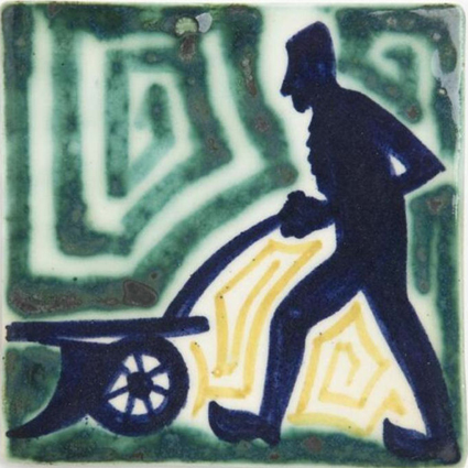 ESKAF / Eerste Steenwijker Kunst Aardewerk Fabriek te Steenwijk. Opgericht voor het maken van kunstaardewerk, serviezen, tegels en bouwaardewerk. Expressieve, individuele vormen, ontworpen door W. Bogtman, J.H. de Groot, Jac. Jongert, Hildo Krop, W.H. van Norden en C. van der Sluys. Van Norden was de enige medewerker in vaste dienst. Het aardewerk is vaak mat creme of mat zwart of in een mat groen/ zwart spatdecor geglazuurd. Daarnaast werden met gestileerde figuren beschilderde stukken vervaardigd. Na de liquidatie in 1927 werd de productie in Huizen (nh) voortgezet. H. Hamming. P. van Stam en L. Schrijver vormden een combinatie die de inventaris en de naam overnamen. Krop en de Groot bleven aanvankelijk als ontwerpers werkzaam. Fokke Hamming (1913-1981), zoon van H. Hamming, die zijn opleiding bij Hobbel en Sluyter had gehad, begon hier met het maken van sieraardewerk. De uit Steenwijk meegekomen plateelschilder W. Evers paste een variant op he versieren toe: er ontstonden potten met een gevlekte donkergroene of bruine kleur. Voorts werd begonnen met de productie van het zogenaamde Gouds plateel. Ook wordt de naam OLA (Orde voor Levenden Arbeid) Huizen toegepast. In 1932 verliet H. Hamming het bedrijf. Fokke vertrok naar Frankrijk voor verdere opleiding, de bedrijfsresultaten gingen achteruit en het faillissement volgde spoedig. Door H. Hamming en M. Honigh werd in 1934 de handelsonderneming N.V. HaHo opgericht, die het aardewerkbedrijf voortzette, o.a. met de productie van met zogenaamde koudlak bespoten sieraardewerk. De financiele uitkomsten waren wederom slecht. In 1935 richtte de N.V. HaHo de Potterie De Driehoek op, waarbij de  artistieke leiding aan Fokke Hamming, teruggekomen uit Frankrijk, werd opgedragen. Vervaardigd werd sier- en gebruiksaardwerk in eigentijdse vormgeving. Na 1945 worden hier uitsluitend geglazuurde aardewerk serviezen gemaakt. Afbeeldingen : tegel met de voorstelling van oogsten, ontwerp Hildo Krop (KENC collectie). Twee foto’s van panden van Alberda, Woldstraat te Steenwijk. De tegels naar ontwerpen van Hildo Krop zijn aan de buitengevel te herkennen. Anno 2012 zijn de tegels niet meer in situ (foto’s beschikbaar gesteld door F.K. te Meppel, waarvoor hartelijke dank!).