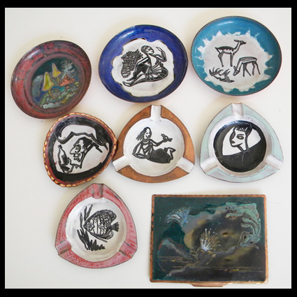 Sierkunst Atelier Gamma te Amsterdam is op 1 april 1953 opgericht door L.J. Paes en Marinus (Rinus) Willems (23-6-1928 / 22-1-2018). Het atelier was gevestigd in de Kattenburgerdwarsstraat. Zij hadden geen personeel in dienst. De heer Paes was een beetje de excentriekeling van de twee. Wij zouden hem nu wellicht een hippie noemen. Op een dag in 1959 kwam hij aan bij het atelier, gaf Willems een hand en zei: ‘Marinus, ik stop ermee. Ik trek de wereld in.’ Willems heeft daarna nooit meer iets gehoord of gezien van hem. Het betekende het einde van Gamma Sierkunst. Het atelier werd op 1 mei 1959 opgeheven. Er zijn geen prijslijsten, foto’s of catalogi van het bedrijf bekend. De twee ondernemers deden dus alles zelf. Willems zorgde voor het klaarmaken van de materialen zoals het gietsel, voor het schoonmaken van de mallen e.d. Willems had zelf een oventje gebouwd of verbouwd. Paes en Willems bedachten samen de decors die op dat moment populair waren. Maar Paes was toch meer de artistieke man. Wat waren zoal de producten die werden vervaardigd? Er werden modische keramische- en geëmailleerde koperen gebruiksvoorwerpen vervaardigd in typisch fifties stijl, zoals negerinnenkopjes en -figuren, schenkkurken, asbakken, sigarettendovers in de vorm van vogeltjes, wandplaquettes en siertegels in de cloisonné techniek. Veel van deze objecten in roodbakkende klei werden met de hand gevormd in drukmallen. De modieuze fifties decors van onder andere zwarte mensen, vissen en rondvaartboten werden met de hand (in)geschilderd. Uit het feit dat er rondvaartboten werden geschilderd mag wel worden afgeleid dat Gamma Sierkunst het opkomende toerisme goed bediende. Voor het weekend werden de bestellingen op de fiets rondgebracht naar de afnemers, hoofdzakelijk de tabakszaken. Belangrijke ooggetuige informatie onder dankzegging ontvangen van Mw. V.van Wees-Spies. Afbeeldingen: vierde foto met asbakken (collectie en foto Mw. V. van Wees-Spies).