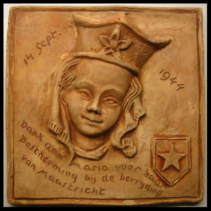 Theodorus (Theo) de Groot wordt geboren te Amsterdam op 9 april 1909. Op jeugdige leeftijd belandt hij als wees in Maastricht. Hij wordt timmerman en in de avonduren bezoekt hij de Kunstnijverheidsschool. Zijn leraren zijn Henri Jonas (1878-1944) en Jeff Scheffers (1906-2009). Maria (Miets) Crolla wordt geboren in Maastricht op 28 november 1919. Zij bezoekt de kunstnijverheidsschool te Maastricht en krijgt onder meer les van Charles Vos (1888-1954). Miets en Theo leren elkaar op deze school kennen. In 1944 trouwen zij en betrekken twee kamers in het Pesthuis naast de Helpoort te Maastricht. Hier is plaats voor een atelier en een winkel/toonzaal. Direct na de oorlog wordt aanvankelijk serviesgoed gemaakt. Maar het echtpaar schakelt al snel over op kunstaardewerk. Miets Crolla had eerder al gewerkt bij het kunstkeramisch atelier Astra C.V. aan de Gubbelstraat. Hier heeft zij ervaring opgedaan met het vervaardigen van kunstaardewerk. Het fijnere boetseerwerk komt voor haar rekening. De chamotteklei wordt betrokken van Sphinx. Naast het echtpaar werkt in de jaren 1945 en 1946 hier ook de jongeman Harry Trienes (1920-2012). Miets en Harry doen het boetseerwerk, Theo stookt de oven en neemt het glazuren voor zijn rekening. Het maken van tegels was ook vooral het werk van Miets. De tegels werden met de hand gevormd en beschilderd of de voorstelling werd in reliëf uitgevoerd (gegoten in een ‘moule’), soms in cloisonné-techniek. Ook werden wel biscuittegels van Mosa betrokken. De Maastrichtse voorstellingen zijn veelal een compilatie van verschillende gebouwen (Pluis en Maussen 2006). Keramische Kunstatelier De Groot-Crolla wordt op 2 juli 1947 ingeschreven in het handelsregister. Het echtpaar heeft altijd vanuit het Pesthuis gewerkt. Theo de Groot overlijdt in 2004. Miets overlijdt in Maastricht op 2 juli 2011. Afbeelding : Echtpaar de Groot-Crolla circa 2002 (foto Jan Pluis); Theo en Miets bij een religieus beeld, 1950s (bron archief Jan Pluis); gelegenheidstegel, bevrijding van Maastricht op 14 september 1944, 143 x 142 x 10 mm (bron Pluis 2008); Madonna met kind, 1951 (coll. Beatrijs Crijnen); ingekraste signatuur Miets (coll. Beatrijs Crijnen).
