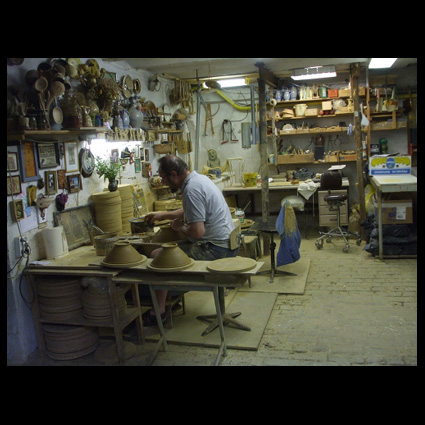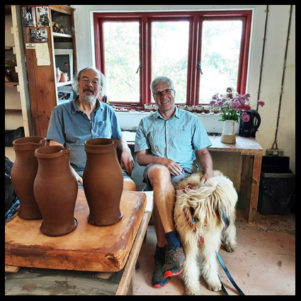 GeschiedenisPottenbakkerij Niek Hoogland in Tegelen is opgericht in 1991 door Pim van Huisseling en Niek Hoogland. Hun specialiteit is het slibversierd aardewerk. Dit is een keramiek techniek die we kennen van het Nederrijnse aardewerk zoals dat in het Maas-Rijn gebied vanaf de 17de eeuw gemaakt is. Het bekende Tegels aardewerk moet in deze “Nederrijnse” traditie geplaatst worden. Het werk van Pim van Huisseling en Niek Hoogland heeft die regionale traditie als uitgangspunt. Vanuit die traditie wordt gezocht naar een hedendaagse toepassing en uitdrukkingsvorm. Naast gebruiksaardewerk maken zij ook vrij werk en werk in opdracht. Sinds 1997 wonen en werken zij op een steenworp afstand van de Maas in het kloosterdorp Steyl bij Venlo. POTTENBAKKERIJ HOOGLAND met winkel PARKSTRAAT 11 B 5935BM STEYL-VENLO Tel: + 31 (0) 77 3736775 info@niekhoogland.nl Afbeeldingen: Niek Hoogland in zijn atelier; Pim Huisseling en Niek Hoogland; inkijkje in de pottenbakkerij; Niek Hoogland (links) en Sebastan Scheid (rechts) tijdens de werkperiode in de Leach Pottery in St. Yves (UK) in mei 2023 (foto van facebook); drie vaasvormen.