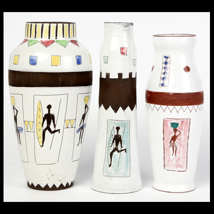 Dit bedrijf vervaardigde van roodbakkende en bruinbakkende klei keramiek, veelal geglazuurd met witte tinglazuur, en voorzien van tekeningen uit de jaren vijftig en zestig 20e eeuw. Meer informatie gevraagd. Afbeeldingen : bron Notarishuis Duiven, oktober 2018.