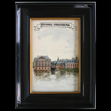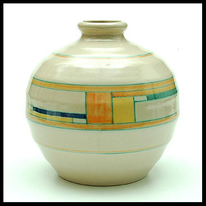 Het merkje Holland Handelsmerk treffen wij aan op porseleinen vazen met een lijndecor in de geest van de ontwerpen ...