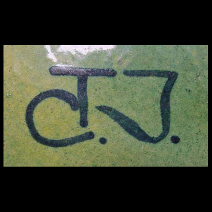 Just van Deventer begint vlak voor de Tweede Wereldoorlog een eigen keramisch bedrijfje aan huis in de Zomerdijkstraat 4 te Amsterdam. De naam ‘Tanagra’ refereert aan de terracotta beelden, die in de Griekse stad Tanagra al vóór Christus zijn gemaakt. Theo Dobbelmann laat zijn eerste plastiekjes bij Just bakken vanaf 1941. Van Deventer en Dobbelmann stelden zich ten doel om kunstaardewerk te vervaardigen, unieke stukken die niet gedraaid of gegoten waren maar met de hand werden gekneed. Dit fraaie en zeldzame aardewerk werd met nieuw ontwikkelde monochrome glazuren overtrokken. Behalve Dobbelmann en Van Deventer werkten ook de keramisten Marja van Putten en Josje Smit (1926-2003) aan de Tanagra producten. Sommige stukken zijn dubbel gesigneerd door bijv. Van Deventer en Van Putten. In de oorlogstijd worden ook wijwaterbakjes, maskertjes en ringstenen gemaakt. In een advertentie in ‘Glas en Ceramiek’, mei 1948 wordt gesproken van Dr. Dobbelmann, directeur, Oranje Nassaulaan 69, Amsterdam-Z. Het bedrijfje blijft bestaan tot 1949, daarna neemt Just van Deventer de boedel over en begint de potterie ‘De Marmot’ en wordt de productie voortgezet aan het Zandpad 3, Amsterdam. Aanvullende gegevens onder dank ontvangen van dochter, mevr. Frans Fischer – van Deventer. Foto: Advertentie, geplaatst in ‘Glas en Ceramiek’, 2e jrg. nr. 122, mei 1948. Overgenomen uit: Asselbergs e.a. – Theo Dobbelmann 1906-1984, Nijmegen 1990. Overige foto’s van stukken en signaturen uit het familiebezit Fischer – van Deventer.