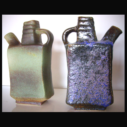 Van Woerden Aardewerk, Gouda (1963-1974), Vest Keramiek, Gouda (1974-1984). Firmanten zijn de broers Marius en Hugo van Woerden. Marius is geboren 4 maart 1941 te Rijswijk.(ZH), het creatieve brein van de aardewerkproductie en Hugo van Woerden, geboren 29 november 1946 te Rijswijk (ZH), broer van Marius, behartigde met name de zakelijke kant van het bedrijf. Marius zijn belangstelling voor de pottenbakkerij werd al jong gewekt in het atelier van pottenbakkerij “De Steenuil” aan de Herenstraat te Rijswijk, zijn overburen. Hier was hij na schooltijd regelmatig te vinden en “hielp” de daar werkzame pottenbakkers met allerhande kleine werkzaamheden. Tijdens zijn diensttijd in ‘t Harde, heeft hij les gekregen van Frans Slot uit Epe, dit moet omstreeks 1961/1962 zijn geweest. Enige tijd na zijn diensttijd, in 1963, is Marius in een gehuurde schuur bij een tuinbouwbedrijf in Monster (van 1963 tot 1966) een eigen bedrijfje begonnen. Zijn jongere broer Hugo hielp hem hierbij met diverse werkzaamheden. In 1966 konden zij een pand huren aan Het Raam 128 in Gouda en daar zetten zij het bedrijf voort onder de naam “Van Woerden Aardewerk”. Hier behartigde Hugo voornamelijk de zakelijke leiding en verrichtte onder meer de nodige colportagewerkzaamheden. Het Museum Boymans van Beuningen heeft in deze periode tijdens een keramiekbeurs een aantal vazen aangekocht. De allereerste producten in Gouda waren van gele (roodbakkende) klei aan het einde van 1960s, met de strikt alkalische glazuur (dus zonder lood (PbO3). Door toevoeging van ongeveer 2 % koper oxide werd ‘Turks’ of ‘Egyptisch’ blauw bereikt (zie de afbeelding). Van Woerden Aardewerk maakte dat om pottenbakkerij ‘Groeneveld’ in Voorschoten te plagen, omdat die zeiden dat niemand anders dat ‘schuimglazuur’ in turkoois kon maken. Na een periode van circa 10 jaar, dus omstreeks 1974, werd dit pand verlaten en stapten ze over naar een groter pand aan De Vest in Gouda. Hier werd de naam “Vest Keramiek” geïntroduceerd. Op het hoogtepunt van de activiteiten waren er ongeveer 30 personeelsleden in het bedrijf werkzaam. In 1984 werden de werkzaamheden in Nederland beëindigd en emigreerden de broers naar Canada. Hier werd opnieuw een bedrijf gestart in keramische producten onder de naam “Castle Ceramics”, gevestigd in Norwich, Ontario. Dit bedrijf heeft nog tot 1994 geproduceerd. Marius woont nog altijd in Canada. Hugo woont nu weer in Nederland. Ze werken beiden niet meer in een keramisch bedrijf of verwante bedrijfstak. Achteraf vinden ze het jammer dat de in hun bedrijf vervaardigde producten niet op de één of andere manier in het materiaal zijn gesigneerd, maar slechts via een sticker werden gemerkt. Tekst: 2006 Henk van Woerden, met enige aanvulling van Hugo van Woerden in 2014. Bezoek de zeer informatieve website van Cor Gijben: www.vestkeramiek.nl Afbeeldingen : turquoise vaas, periode Het Raam (1963-1974) (collectie Roel Goedhart); 2 siervazen (coll. Els van Petersen); 4 siervazen (coll. Els van Petersen); signatuur / stempel Het Raam periode (bron Roel Goedhart); sticker Vest Keramiek.