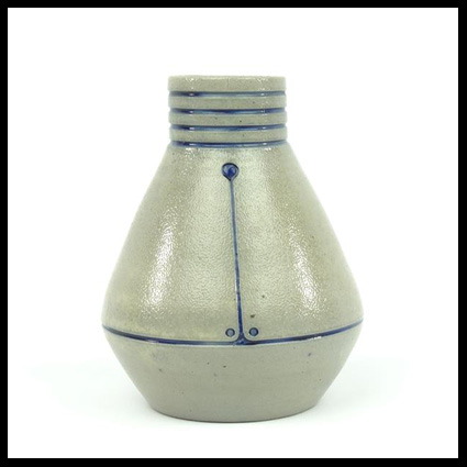 J.N.H. (Nico) Eissenlöffel is geboren in 1881. Hij huwt met Clara Anna Eisenloeffel-Willekes MacDonald. Nico is kunsthandelaar en auteur. Zijn kunsthandel was gevestigd aan het Rokin 42 te Amsterdam van 1912 tot 1920. Daarna vanaf 1922 tot minimaal 1923 aan Rokin 34. Ook wordt genoemd Rokin 56. Nico Eisenloeffel en de collega kunsthandelaar J.H. De Bois waren in 1919 de oprichters van de Nederlandsche Kunstkoopersbond, een zuster organisatie van de Vereeniging van Handelaren in Oude Kunst. Eissenloeffel handelde in werken van kunstenaars als James Ensor, Gauguin, Van Gogh, Picasso, Redon en Willem de Zwart. In het Algemeen Handelsblad (22 oktober 1915) schreef een verslaggever over hun galerieën: ‘Het zijn van die rustige, bescheidene, kleine exposities, waarvan kunsthandels als Eisenloeffel en De Bois – die hoofdzakelijk op zwart-en-wit kunst zijn ingericht – gaandeweg hun specialiteit hebben gemaakt en die men, tusschen de opzichtiger schilderijen-tentoonstellingen in, niet gaarne zou verzuimen.’ In 1920 deden De Bois en Eisenloeffel mee aan een tentoonstelling in het Stedelijk Museum. Tijdens de expositie brandde Eisenloeffels kunsthandel volledig uit. Verloren gingen o.a. een schilderij van Van Gogh, een van Gauguin en een collectie werken van Redon. Een kleine troost was dat de belangrijkste werken uit zijn collectie net op de tentoonstelling hingen. Verslagen vertrok Eisenloeffel daarop naar Italië, en vervolgens naar Parijs, om in 1922 terug te keren en een nieuwe kunsthandel aan het Rokin te openen. Als auteur schreef hij in 1905 acht korte verhalen in De Amsterdammer onder pseudoniem N. van Middelhoven (meisjesnaam van zijn moeder). Eissenlöffel overlijdt in 1974. Van Nico Eissenloeffel is gesigneerd grès keramiek bekend. Het is niet duidelijk of hij zelf dit werk heeft gemaakt of dat hij dit in opdracht elders liet uitvoeren. Afbeeldingen : Nico Eissenloeffel, 7-10-1938 (bron DBNL); grès zoutglazuur vaasje (Veilinghuis Van Spengen, Hilversum).