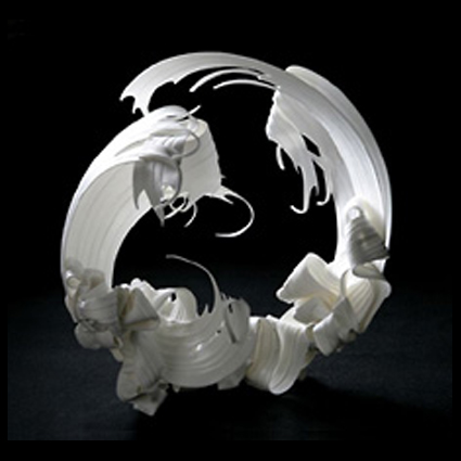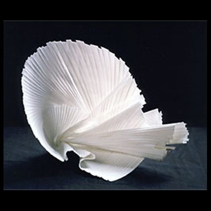 Paula Bastiaansen begint een object door een tekening te maken en die te bedekken met transparant plastic. Daarna vormt ze zeer dunne lappen bone china. Uit deze lappen snijdt ze repen, die ze op haar tekening schikt, totdat het patroon is gevormd. Ze laat het proto-object drogen, legt het dan in een komvormige mal, vormt de plooien en uitsteeksels en stookt het tenslotte. Meer en meer assembleert zij vormen, deze werkwijze, levert zeer complexe en beweeglijke objecten op (tekst: Carla Koch Galerie, Amsterdam).