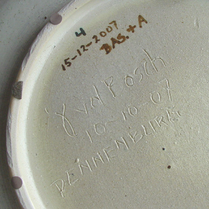 Jan van den Bosch is geboren op 8 mei 1938 te Nijmegen. Van 1958 tot 1962 bezoekt hij de kweekschool voor onderwijzers te Nijmegen en doet de akte tekenen en schilderen M.O. te Tilburg. Van 1963 tot 1966 volgt hij de opleiding tekenen en schilderen aan de Vrije Academie te Den Haag. Sinds 1966 is hij werkzaam als zelfstandig pottenbakker in eigen atelier. Van 1968 tot 1970 volgt hij nog de cursus Keramiek (m.n. glazuurtechnologie) aan de Koninklijke Academie voor Schone Kunsten te ’s-Hertogenbosch (docenten Jan Oosterman en Emmy van Deventer). Tot circa 1970 is de naam van zijn pottenbakkerij ‘Atelier ’66’.  Van 1964 tot 1970 loopt Van den Bosch stages en neemt deel aan symposia in keramiekcentra zoals La Borne en Vallauris in Frankrijk, Faënza en Milaan in Italië. Tussen 1970 en 1974 volgt hij kunstgeschiedenis aan de Universiteit van Nijmegen. In dezelfde tijd, van 1973 tot 1974 doet hij cinematografie bij het Nederlands Filminstituut, in Arnhem en in Bergen aan Zee. Na 1970 is de naam ‘Pottenbakkerij St. Michaël’. in 1980 werkt Jan van den Bosch in de steenfabriek de Ruga in Maren-Kessel, in de productie en voor het fabriceren van grote objecten voor een tentoonstelling in Faënza (IT). Na 2002 is Pottenbakkerij Jan van den Bosch gevestigd in Dennenburg. Van den Bosch is ook kunstschilder en tekenaar. Jan overlijdt plotseling op 11 augustus 2011 te Rotterdam. Exposities Individueel: Amsterdam, Den Haag, ’s Hertogenbosch, Oudenbosch, Oisterwijk, Oss (De Lievekamp, Jan Cunen Museum, Reinart Gallerie, d’Overvloed), Utrecht, Nijmegen, Ravenstein. Frankrijk: Parijs en La Borne e.a. België: Oostende en Brussel e.a. Internationale groepstentoonstellingen: Italië: Faënza: 1978, ‘80 en ’81 en Japan: Mino: 1994 Signatuur: j of voluit geschreven met datering en glazuurgegevens, zie de foto’s.