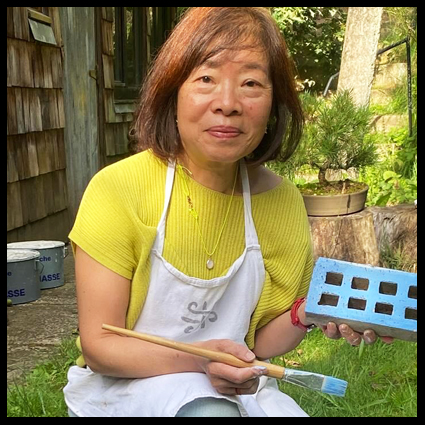Yeung Yuk-Kan is geboren in 1959 te Hongkong. Van 1977 tot 1981 studeert zij Schone kunsten en de Chinese literatuur aan de Chinese Universtiteit van Hong Kong. In 1987 behaalt zij een post universitair diploma in keramiek aan het Goldsmiths College, Universiteit van Londen. Het is in deze tijd dat ze haar partner ontmoet en zich vestigt in Nederland waar ze sindsdien werkt. Haar werk wordt internationaal tentoongesteld met stukken in de vaste collectie van het Hongkong Museum of Art als ook in privé verzamelingen in Azië, Europa en de U.S.A. Tekst bron: www.mythings.nl Bezoek ook de website: www.yeungyukkan.com Voor vragen en/of informatie neem gerust contact op met: Yeung Yuk-Kan, Bavelselaan 7, 4835 GP BREDA. Afbeeldingen : Portret van Yeung Yuk-Kan uit 2009 (bron: zomercatalogus De Hullu, Gees, onder dank); portret in kleur, 2011; portret in kleur 2024, opname tijdens workshop met Guy van Leemput (bron Facebook 11-08-2024); Pool Harbour , porselein container met decor, ca. 2009 (bron: zomercatalogus De Hullu, Gees); werk van onbekende datum en bron.