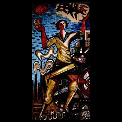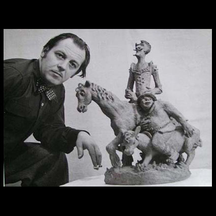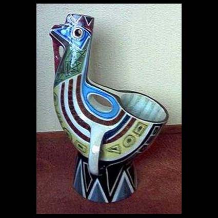 Foto’s: portret uit COSA, dec. 1954, keramische haan 1959, signatuur, 1962, tegeltableau LIOF Maastricht 1977.
