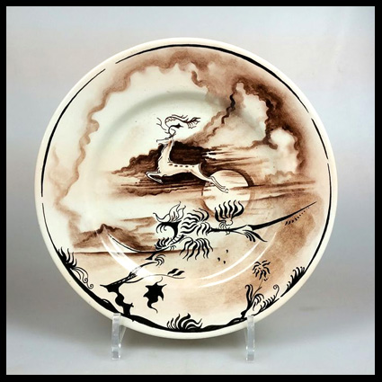 Klaas Fernhout is geboren op 28 augustus 1927 te Baarn. Al op jonge leeftijd bleek dat hij aanleg had om te tekenen. Op zijn tiende jaar kreeg hij les van Rick Daamen en later ook van architect Berning uit Baarn. Het was de bedoeling dat hij naar de Rijksnormaalschool in Amsterdam zou gaan om daar een gedegen beroepsopleiding te volgen want hij wilde tekenleraar worden. Maar daar stak de oorlog een stokje voor. Toen hij na de oorlog alsnog die opleiding wilde gaan volgen werd hij door een tbc besmetting getroffen. Tijdens zijn verblijf in het sanatorium Hoog-Laren had hij alle tijd om zichzelf verder te bekwamen in het tekenen. Maar van een verdere gerichte opleiding is nooit meer iets gekomen. Wel heeft hij er zich steeds op toegelegd om zijn personen ook anatomisch zo nauwkeurig mogelijk weer te geven. Een werkzaam leven In de jaren vijftig heeft hij twee jaren als decorschilder maar vooral ook als ontwerper gewerkt bij de plateelfabriek ‘De Ram’ in Arnhem. Daarna vestigde hij zich in Blaricum waar hij op kamers ging wonen. Ook werd hij lid van de kunstenaarsvereniging ‘De Kring’ in Hilversum. Maar hij bleef hoofdzakelijk werken in de beslotenheid van zijn atelier zonder veel naar buiten te treden met zijn werk. Zodoende kwam het vele werk dat hij maakte maar zelden tevoorschijn. Vooral vrienden en kennissen liet hij ervan kennisnemen. Slechts enkele keren was er een tentoonstelling, zoals in het Blaricumse en Naardense raadhuis en in de leeszaal in Laren. In het jaar 2000 werd voor het laatst een selectie van zijn werk tentoongesteld bij de Plankeniers. Klaas Fernhout timmerde niet aan de weg. Hij leidde veeleer een wat teruggetrokken leven. Hij was een gelovig mens. Hij zag het leven als een reis waarop je zoekend op weg bent naar je doel. Veel van zijn tekeningen laten dan ook mensen zien die gepakt en gezakt zijn en die kaarten en boeken lezen om daardoor de weg te vinden. Klaas Fernhout is op 1 februari 2006 overleden in zijn huis aan de Bussummerweg 7 te Blaricum (teksten: Jan Willems in Hei & Wei , dorpsblad van Blaricum, juni 2006 en collectie Streefoord). Afbeeldingen : sierschotel met springend hert, Ram Arnhem, diameter 22,5 cm, ca. 1950 (Catawiki.nl, augustus 2016), signatuur Fernhout op voornoemd bord.