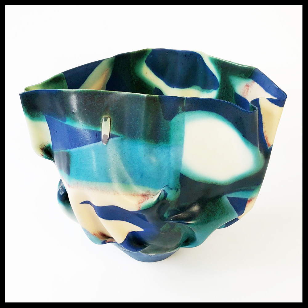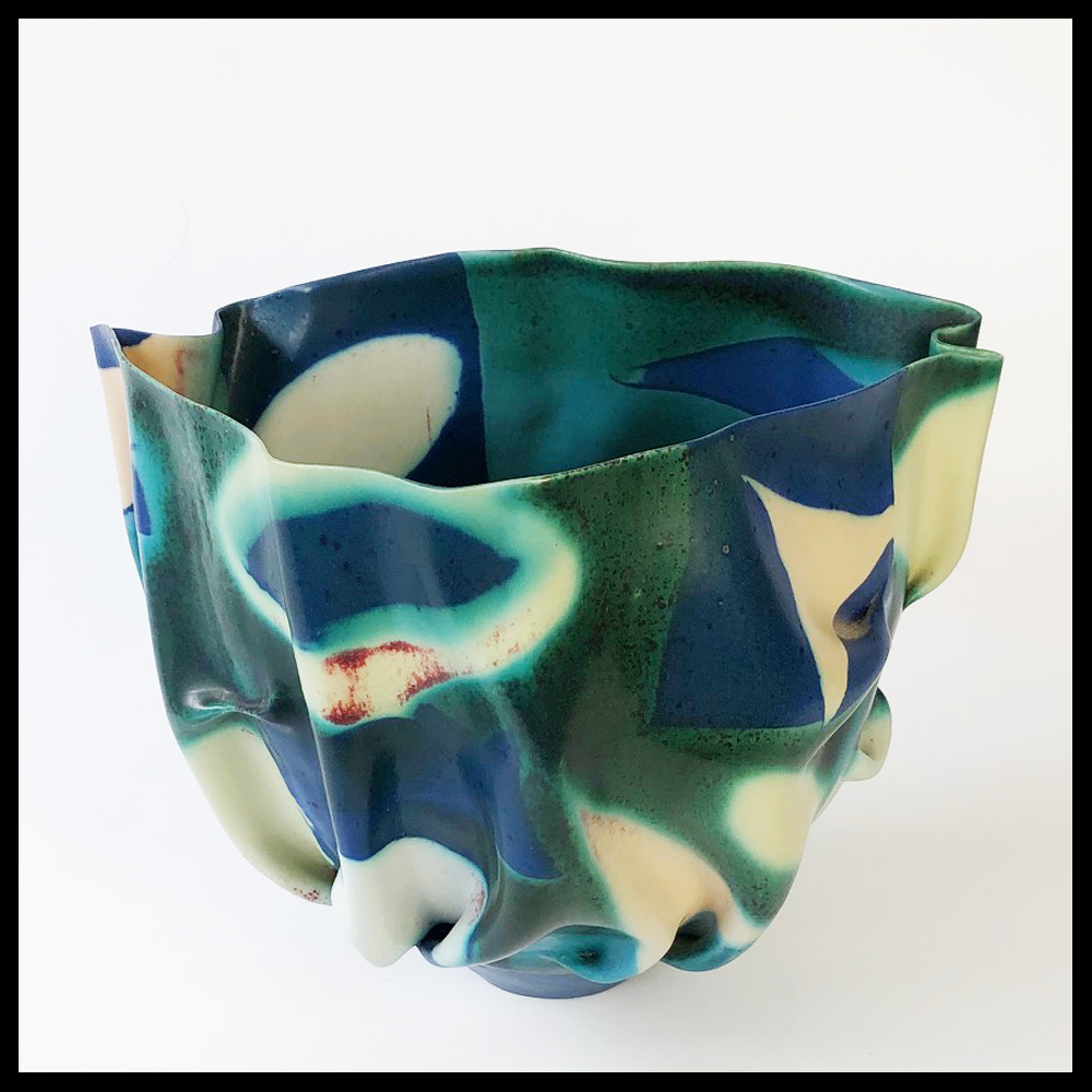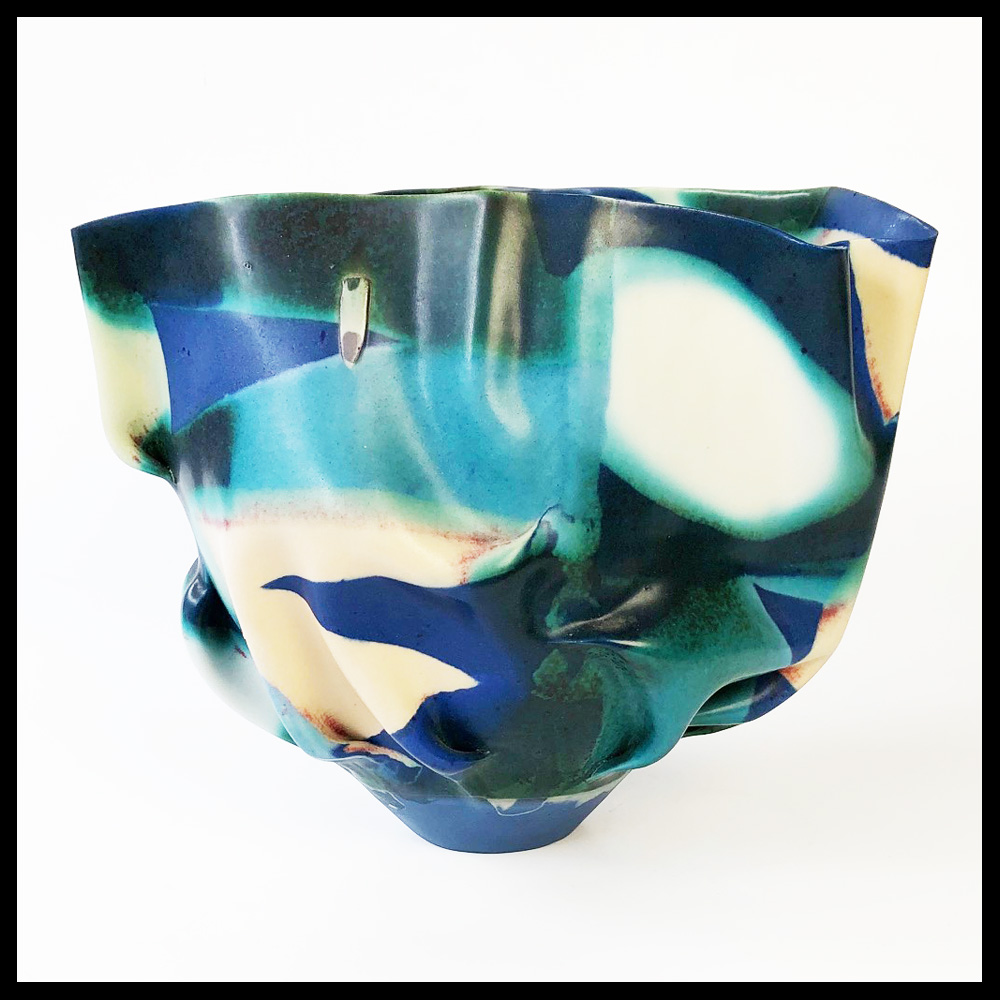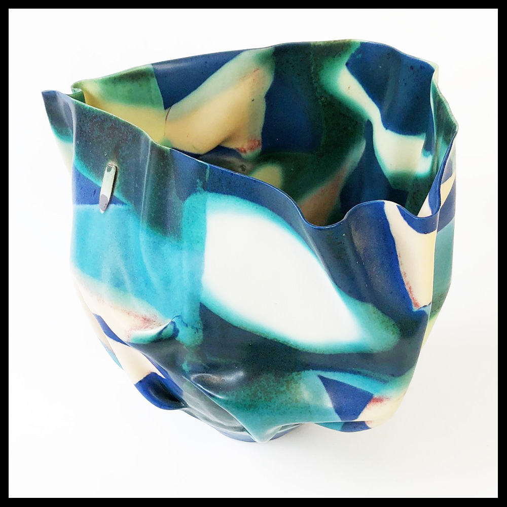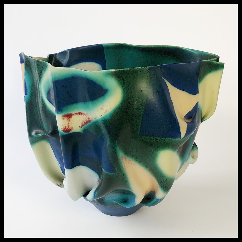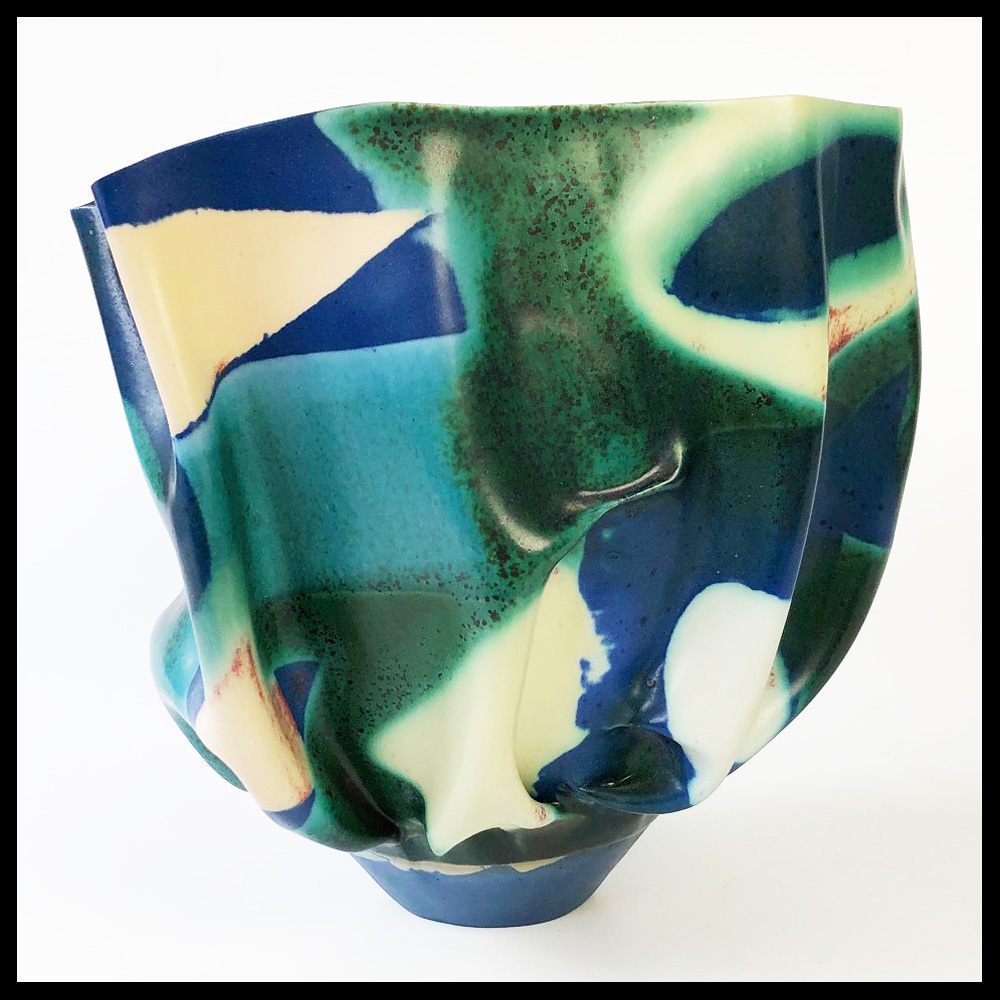 babs Haenen (NL) – kleurrijke dunwandige vaasvorm met geplooide huid