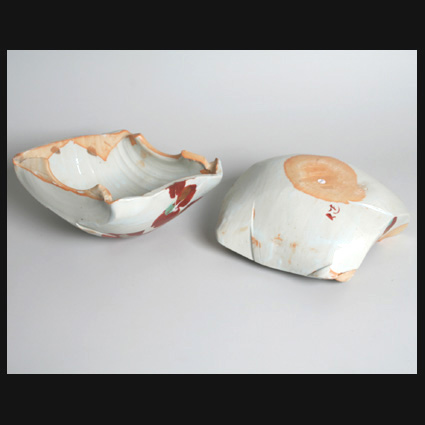 Doos in twee delen in witte porselein met een gekwast overglazuur decor in rood met wat groen en goud (Imari kleuren), de binnenzijde met een eenvoudig handgeschilderd decor. De doos sluit op een ingenieuze manier. Dit stuk is door de eerste eigenaar aangekocht bij Galerie Carla Koch te Amsterdam in 2001. Two-pieces box in white porcelain with a brush stroke overglaze decoration in red with some green and golf (Imari colors), inside with a simple handpainted decoration. The box will close in a clever way. This piece has been bought by first owners in Gallery Carla Koch, Amsterdam in 2001 About Akaji Ken is born in Kanazawa, Japan in 1938. At the age of 16, Akaji Ken started as an apprentice with a master who taught him the distinctive overglazing technique. When he was 27 he opened his own workshop where he produced artwork in the Japanese tradition. Still, he was looking for new possibilities in ceramics and took part in the crafts movement, which championed a modern approach towards ceramics. Since 1981 Akaji has been focusing on red overglazed works, on which the red decoration is applied through simple brush strokes. Even though the work of Akaji Ken is clearly influenced by Japanese tradition, he has developed a completely unique and distinctive style. Akaji Ken has become known through his red overglazed objects and his subtle and consistently applied impressionistic decorations. He first creates an object with a smooth white glaze. After this has been heated, he adds another, coarser, coloured layer on top of the glaze and once more the object is heated. Akaji’s shapes stem directly from Japanese tradition. He produces sake cups, stackable boxes and sushi dishes, whose shapes hardly differ from every-day Japanese utensils. However, through his decoration techniques these objects transcend their daily functions, even though they can still be used. At the exhibition in 2001 at Carla Koch Gallery in Amsterdam Akaji Ken displayed monumental objects. At the exposition in 2003 he once more displays a series of boxes at the same gallery. Akaji Ken proves himself as one of the masters of contemporary Japanese ceramics, which is obviously rooted in the overwhelming Japanese tradition. Text and portrait courtesy: website Carla Koch, Amsterdam, about 2003.