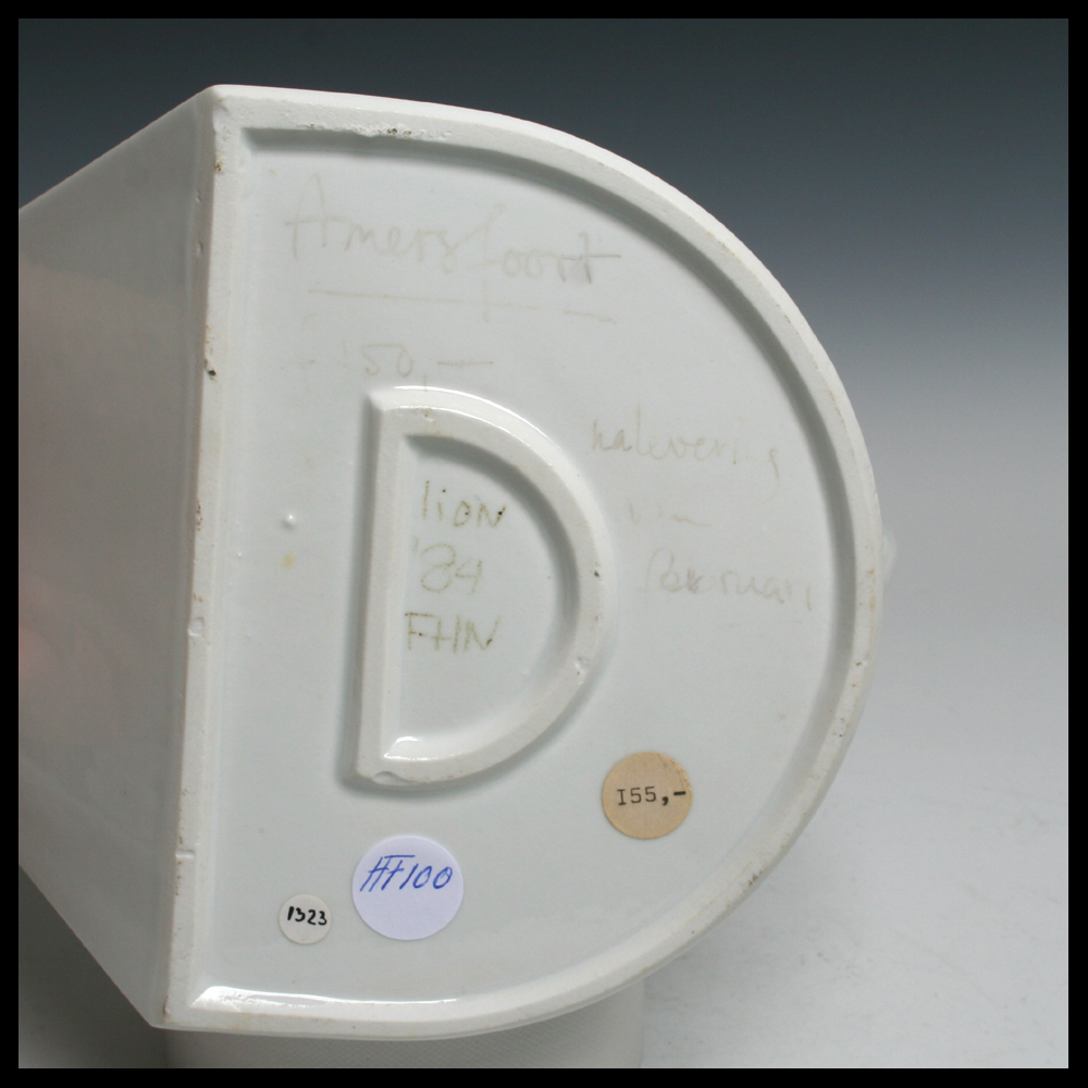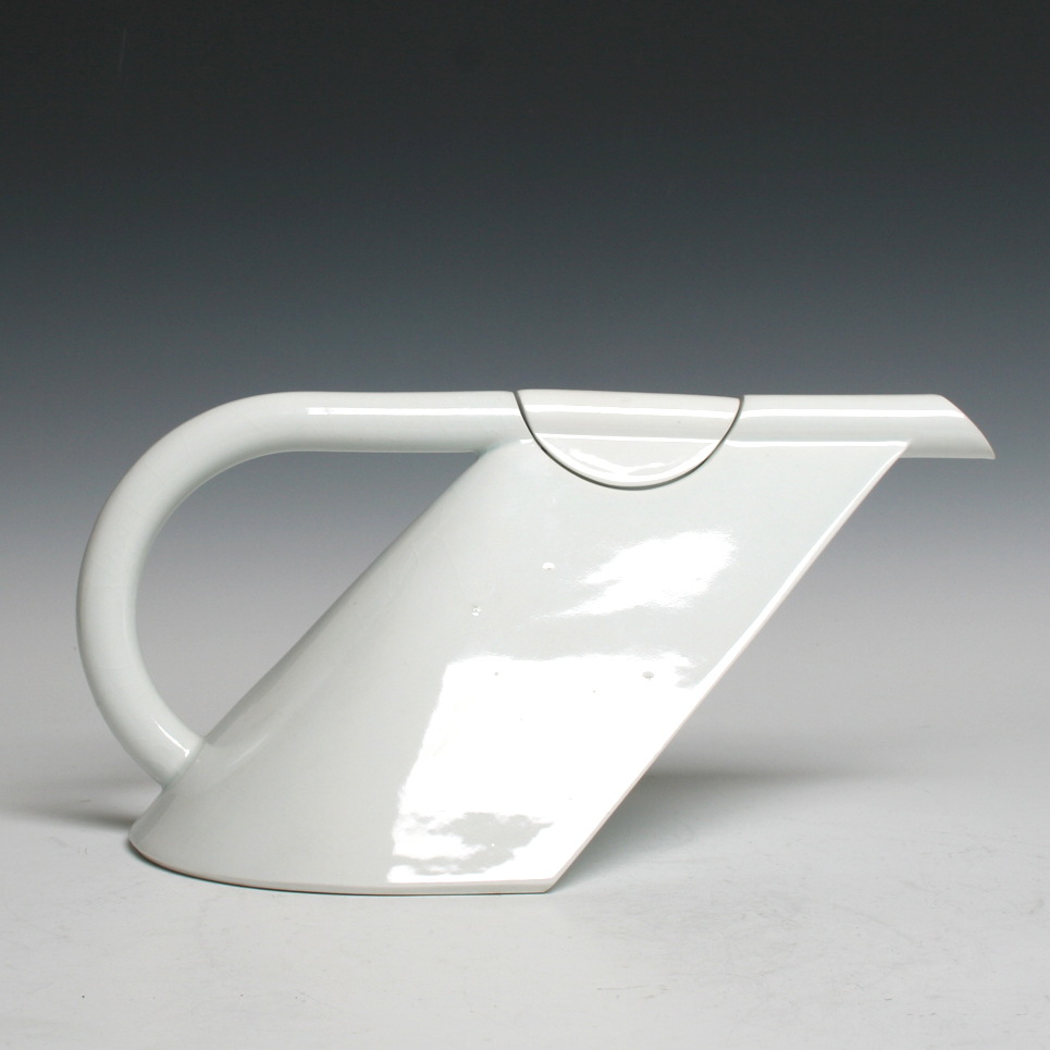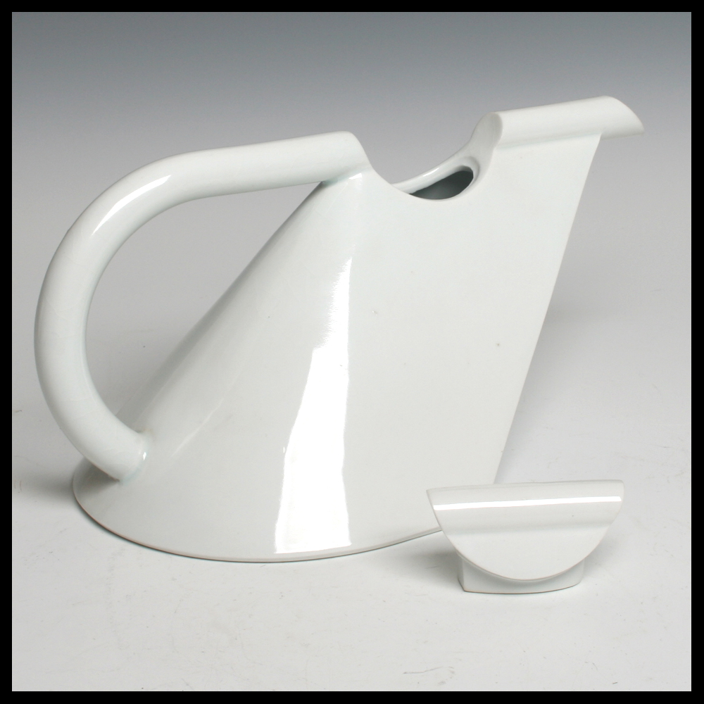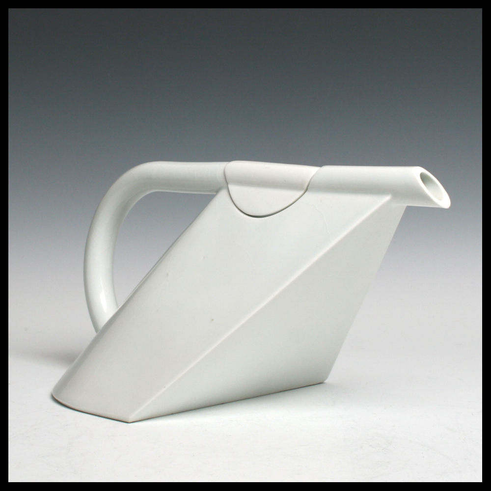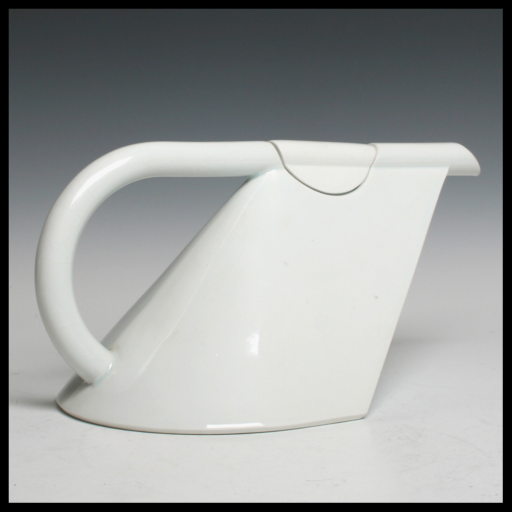 Dick Lion (NL/DE), de beroemde theepot ‘Concorde’, porselein, in een mal gegoten, hoogte 13,6 cm, breedte 28 cm, diepte 16 cm, 1984. Opmerking: craquelures en twee bakstipjes zichtbaar op body bij tuit naar rechts.