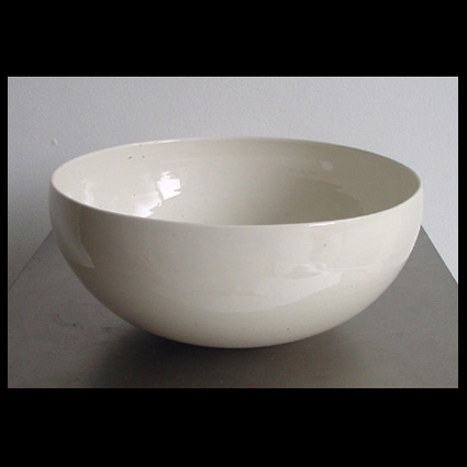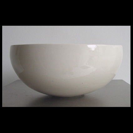 Gert de Rijk is een energieke pottenbakker / keramische kunstenaar geweest. Zijn oeuvre kent vele aspecten. Sinds 1965 heeft hij de pottenbakkerij in de Twijnstraat aan de Werf van Jan van Ham voortgezet. Naast zijn eigen werk heeft hij ook met andere kunstenaars onder de naam Z4 ( de Vier Zwammen) samengewerkt. Dit samenwerkingsverband heeft prachtige objecten opgeleverd. Zie bijvoorbeeld de grote bolle kerfsnede vaas die wij elders op onze site aanbieden. In 1991 is deze perfect gedraaide porselein kom met een verlaagde bodem tot stand gekomen. De kom heeft en prachtige ivoorkleurige hoogglans.