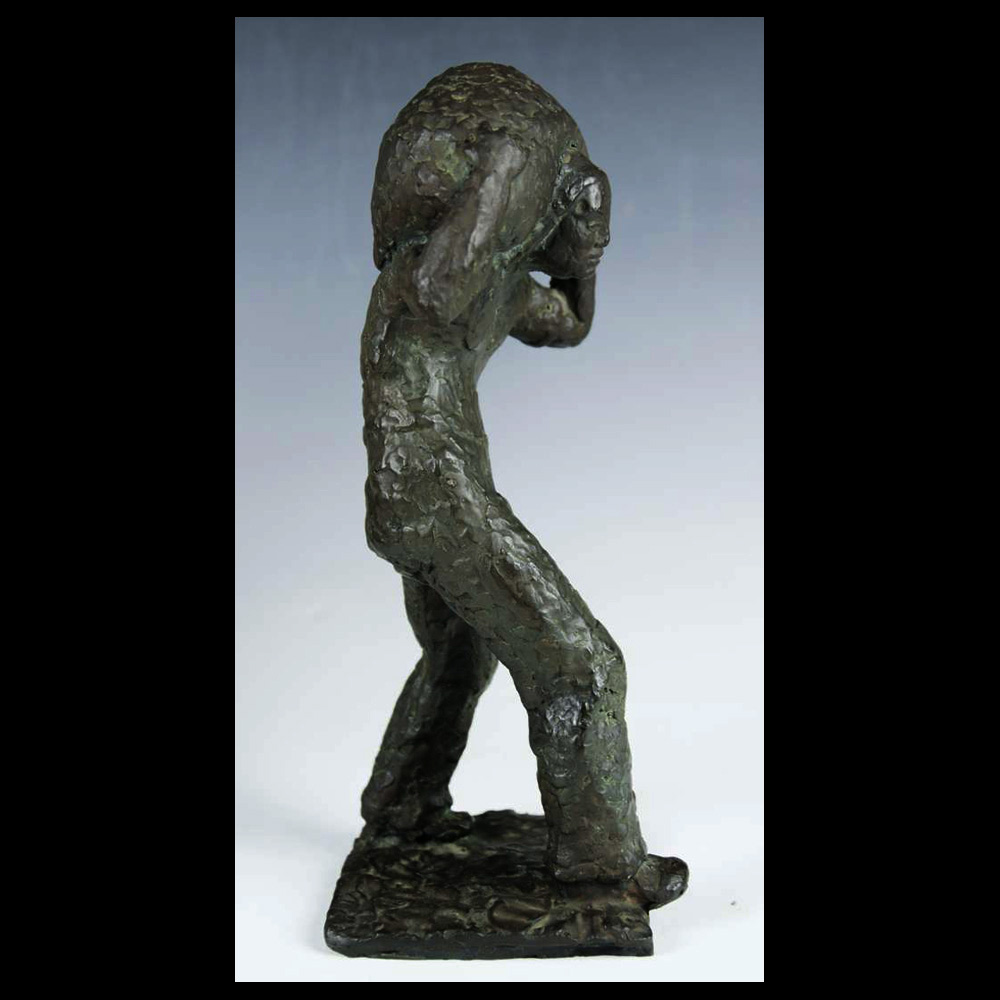 Han Rehm (NL 1908-1970), kleine copy van de sculptuur “De lastdrager” van de Eersteling, Rijnhaven Rotterdam, brons, hoogte 30cm, niet gesigneerd, circa 1950.