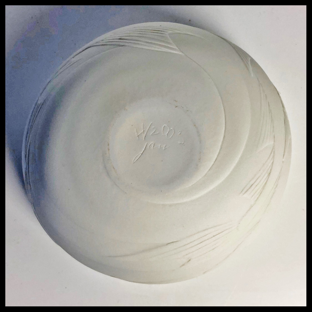Hanneke Verheij (NL), kom met vliegende vissen, de vinnen ten dele uitstekend boven de rand, transparant porselein, hoogte 5,9 cm, diameter 13 cm, 2003.