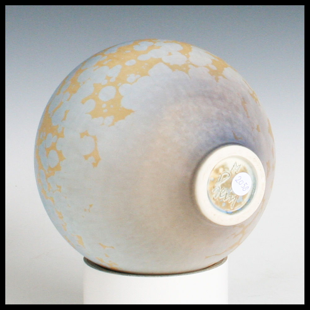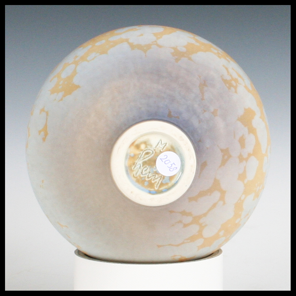 Hein Severijns (NL) – bol vaasje met kristalglazuren in oker en blauw