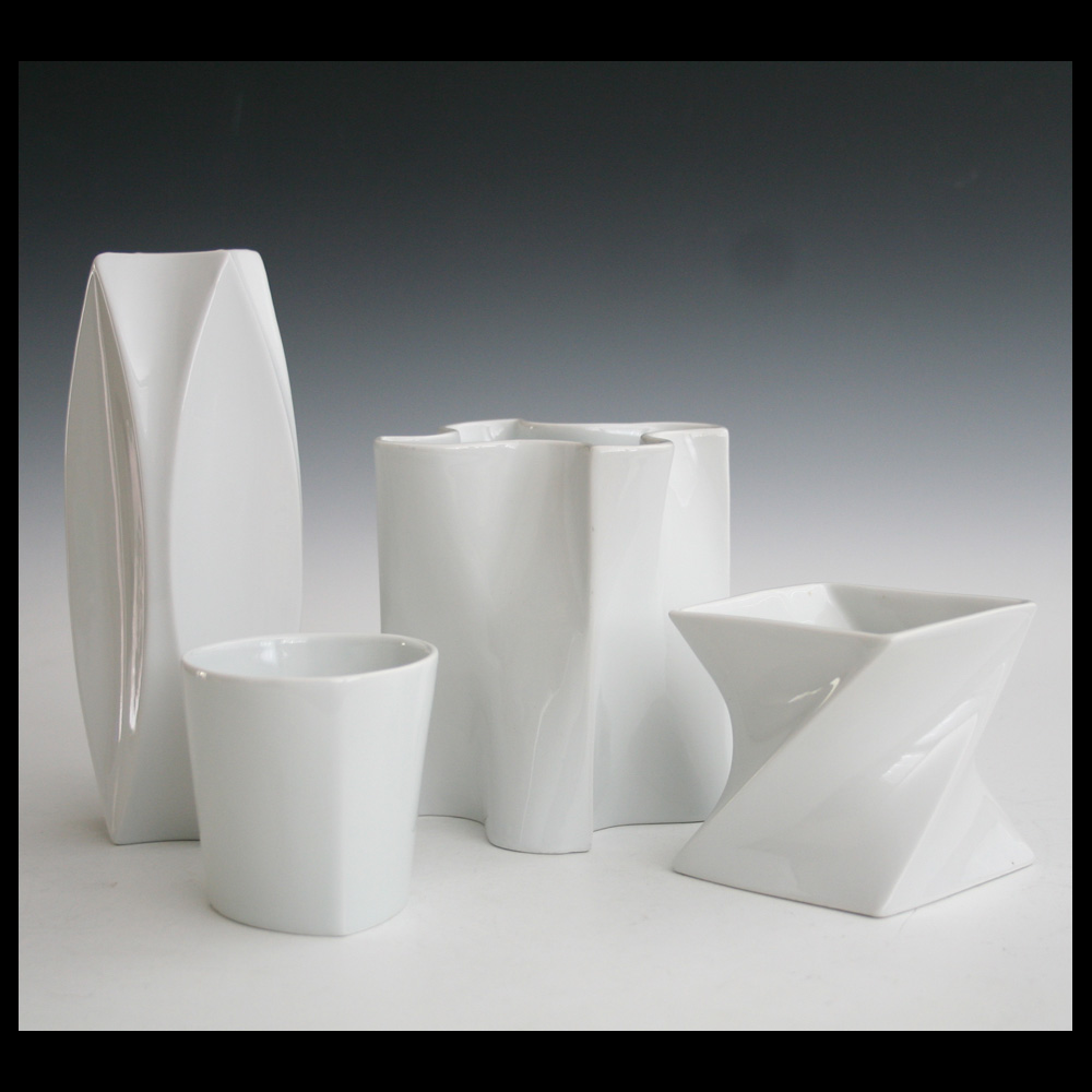 Jan van der Vaart (NL), vierlobbige vaasvorm ‘Flubber’, porselein, gegoten in een mal in eigen atelier, hoogte 14 cm, 1984.