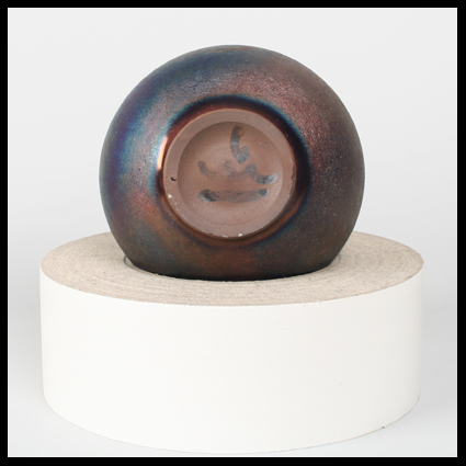 Johan Soesbergen (NL-1938) was draaier en ontwerper bij Mobach in Utrecht. In de 1990s heeft hij zeer verfijnde vaasjes met een zeer kleine mond gemaakt in geraffineerde lusterglazuren. Het hier aangeboden vaasje is een prachtig voorbeeld van zijn meesterschap. Steengoed, lusterglazuren met een goudglans, hoogte 12,3 cm.
