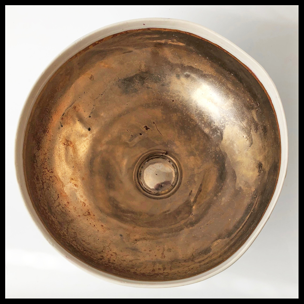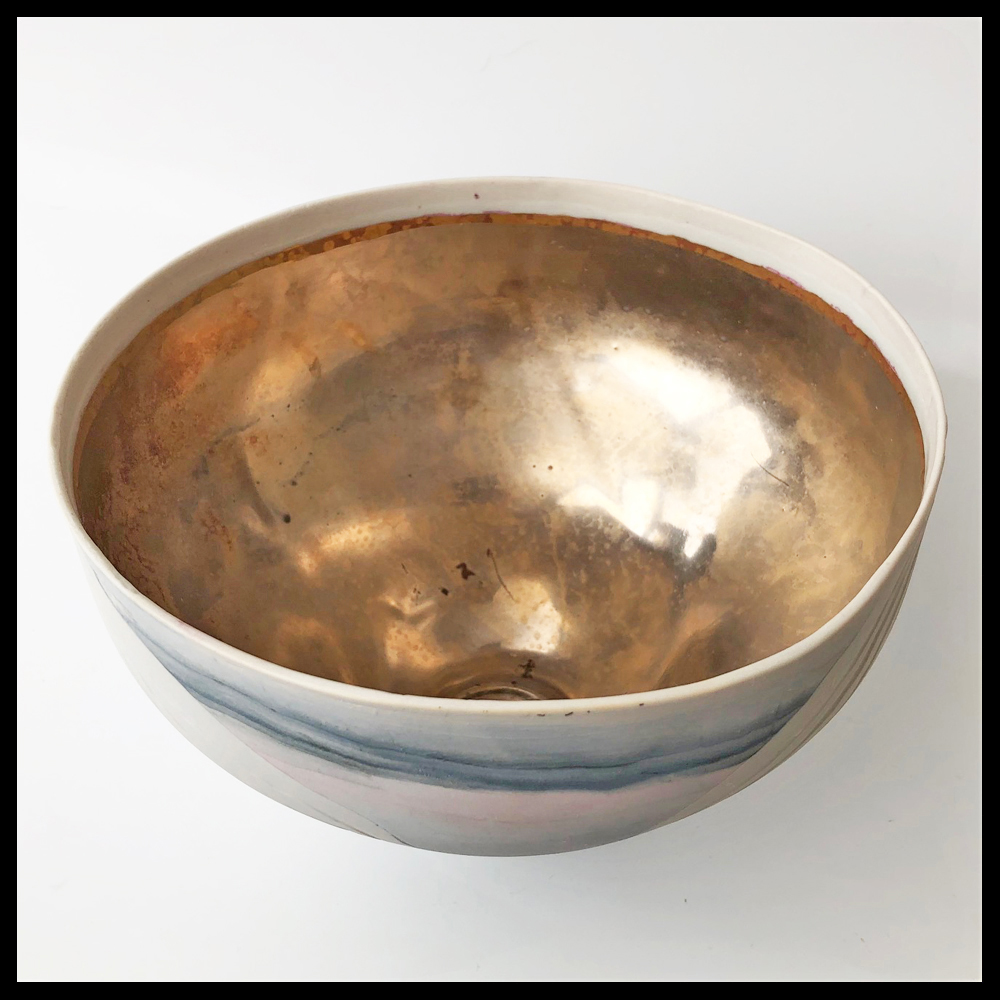 Johan van Loon (NL) – conische komvorm met reliëflijnen en goud interieur