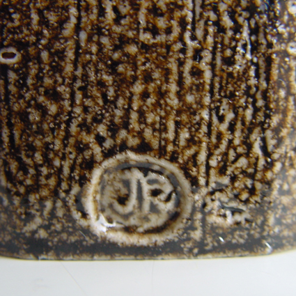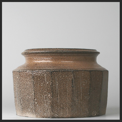 Wat kan een pottenbakker weglaten of toevoegen om van een gedraaide pot een kunstwerk te maken? In die strijd koos Johnny Rolf er in 1977 voor aan de dikwandige pot 16 verticale kanten te snijden. Na het droogproces werd de pot hoog gestookt in de zoutoven van de kunstenaar in Morra (fr.). De huid heeft hierbij een prachtige zoutglazuurlaag gekregen. Deze pot is in 1977 aangekocht in het Singermuseum Laren tijdens de expositie Geweven Wandkleden / Margot Rolf en Keramiek / Johnny Rolf en Jan de Rooden, 17 april t.m. 22 mei. De pot is afgebeeld in de catalogus.