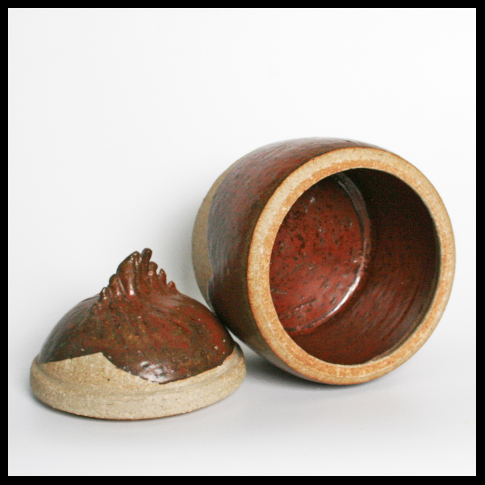 Johnny Rolf (NL), “Bergpot”, op de schijf gedraaid en geboetseerd, eigen kleisamenstelling, de pot is geïnspireerd op de Chinese potten met een berglandverbeelding uit de Han periode, buitenzijde ten dele geglazuurd, binnenzijde volledig geglazuurd, reducerend gestookt in de gasoven in haar buitenatelier in Morra (fr), hoogte 22,8 cm, diameter 16,4 cm, circa 1982.