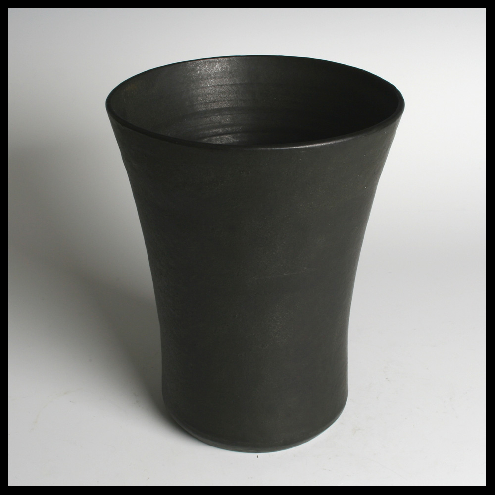 Lucie Q. Bakker (NL) – een grote gladde functonele dahlia vaas, handgedraaid, buitenzijde glad, binnenzijde ribbels, steengoed, matte donkere bronskleurige glazuur, gemaakt in haar Amsterdamse atelier, 1950s.
