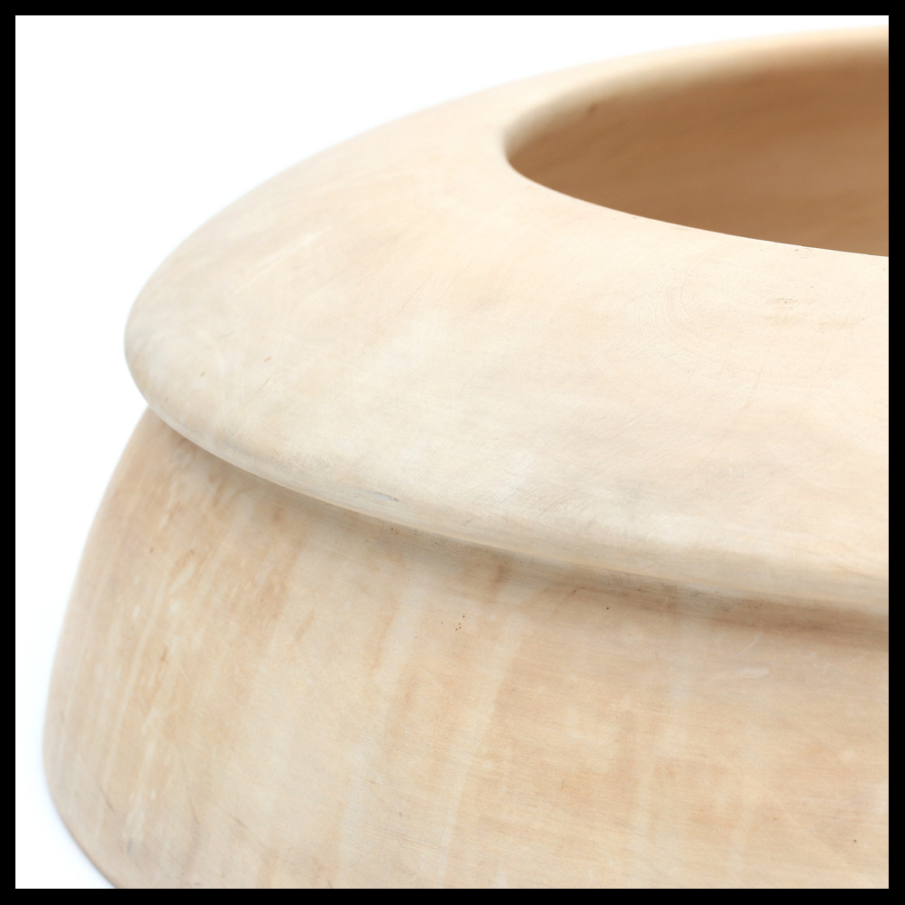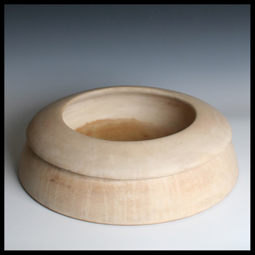 Maria van Kesteren (NL), zeer grote houtgedraaide kom, licht gewit populierenhout, hoogte 12,5 cm, diameter 47 cm, monogram kunstenaar, 1980s. Provenance collectie van de kunstenaar.