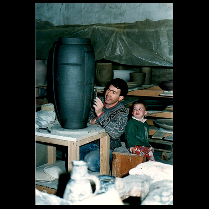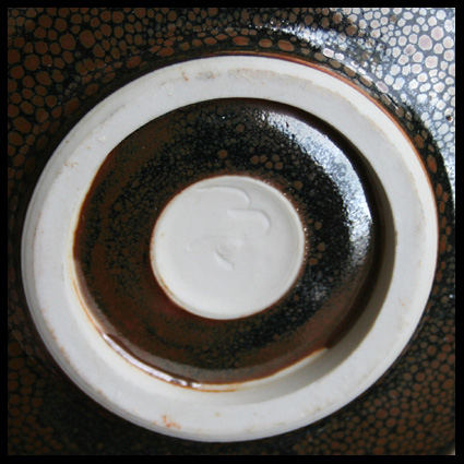 Kom, porselein, handgedraaid, fraaie hazenvelglazuur. Dit stuk is gekocht door de eerste eigenaar bij Galerie Loes & Reinier in Deventer. Over Mathieu Robert Mathieu Robert is een getalenteerd pottenbakker, werkend in Poncé sur le Loir in Frankrijk. Zijn werk is sterk geïnspireerd door Chinese en Japanse keramische kunst, zowel in vorm als in de glazuur. Picture: the artist in his workshop in december 1998, together with his young daughter, working on a huge celadon container (collection Capriolus).