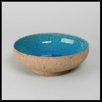 Groep steengoed aardewerk in het fraaie Egyptische blauw door Nils Kähler, 1960s. About Herman August Kähler Pottery, Nestved (on Zealand) 1839-1974. Thank to the potter Joachim Christian Herman Kähler (1808-1884) that he left the duchy Holstein in 1839 and established a workshop in Nestved. This way, the foundation stone to the biggest flagship within the Danish ceramics, was laid. In the first 30 years he produced all-night burners, spring water jars and articles for the everyday use in the kitchen. In 1872 his sons Herman August Kähler (1846-1917) and Carl Frederik Kähler (1850-1920) took over the pottery. Herman August took over the production of all-night burners. He however followed his intuition and started his own workshop, and in 1875 he established what we today know as Kählers Pottery in Nestved. Carl was left alone and decided to sell his part. Herman August Kähler introduced the signature, which since that time has been the mark on all Kählers products. In 1883 Vilhelm Klein (1835-1913, architect) from “the Copenhagen Drawing School for Women” was looking for a pottery where he could have his students’ ceramics fired. This resulted in a co-operation with Herman August Kähler. This co-operation gave Herman August the inspiration to start production of other items than all-night burners. He experimented again and again with glazes. The target was a red luster glaze, like the one used by the Italian maestro Giorgio from Gubbio in the 16th century. In 1888 he presented a ruby glaze which made him world famous. This ruby is today known as “Kähler red”. In 1917 Herman August Kähler (HAK) died. After the 1st World War the number of agents worldwide were extended. Kähler ceramics were represented at most recognized museums, e.g. in the USA at the Metropolitan Museum of Art. Items were sold through Zacho & Co in Hollywood, the Frankl Galleries in New York and The Associated Merchandising Cooperation. After Herman Hans Christian’s death in 1940 the 4th generation takes over. Nils Joakim Kähler (1906-1979, potter) takes care of the artistic side and Herman Joergen Kähler (1904-1996, potter) takes care of administration and glaze production. Nils Kähler had been working together with Hammershoei and continued this style, in a modern version with the gray/black/white Thirslund glaze. Cylindrical design in stoneware with yellow and turquoise glaze, often with stamped decorations in fishbone pattern. Besides the mark, Nils Kähler always signed his items with ‘Nils’. Nils Kähler left his stamp on the factory until 1968, when the two brothers separate and the factory closes in 1974. An era is finished in Danish ceramics but the many Kähler journeymen, who started their own potteries, all over Denmark uphold the grand traditions and the Kählers have for ever put their stamp on Danish ceramics. Text from: Ceramics Today, many thanks www.ceramicstoday.com Kom diameter 14,5 cm Kleine vaas hoogte 12,6 cm Hoge vaas hoogte 23,2 cm