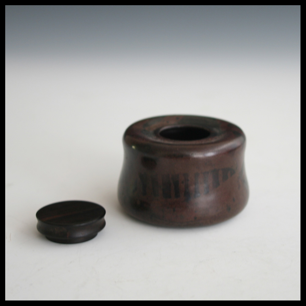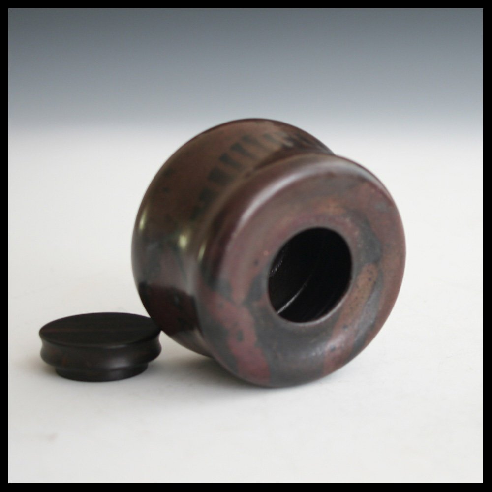 Sonja Landweer en Maria van Kesteren (houten dekseltje), klein keramisch doosje met houten dekseltje, geschilderd streepjes decor zijwand doosje, hoogte 6 cm, breedte 8,2 cm, 1970s-1980s.