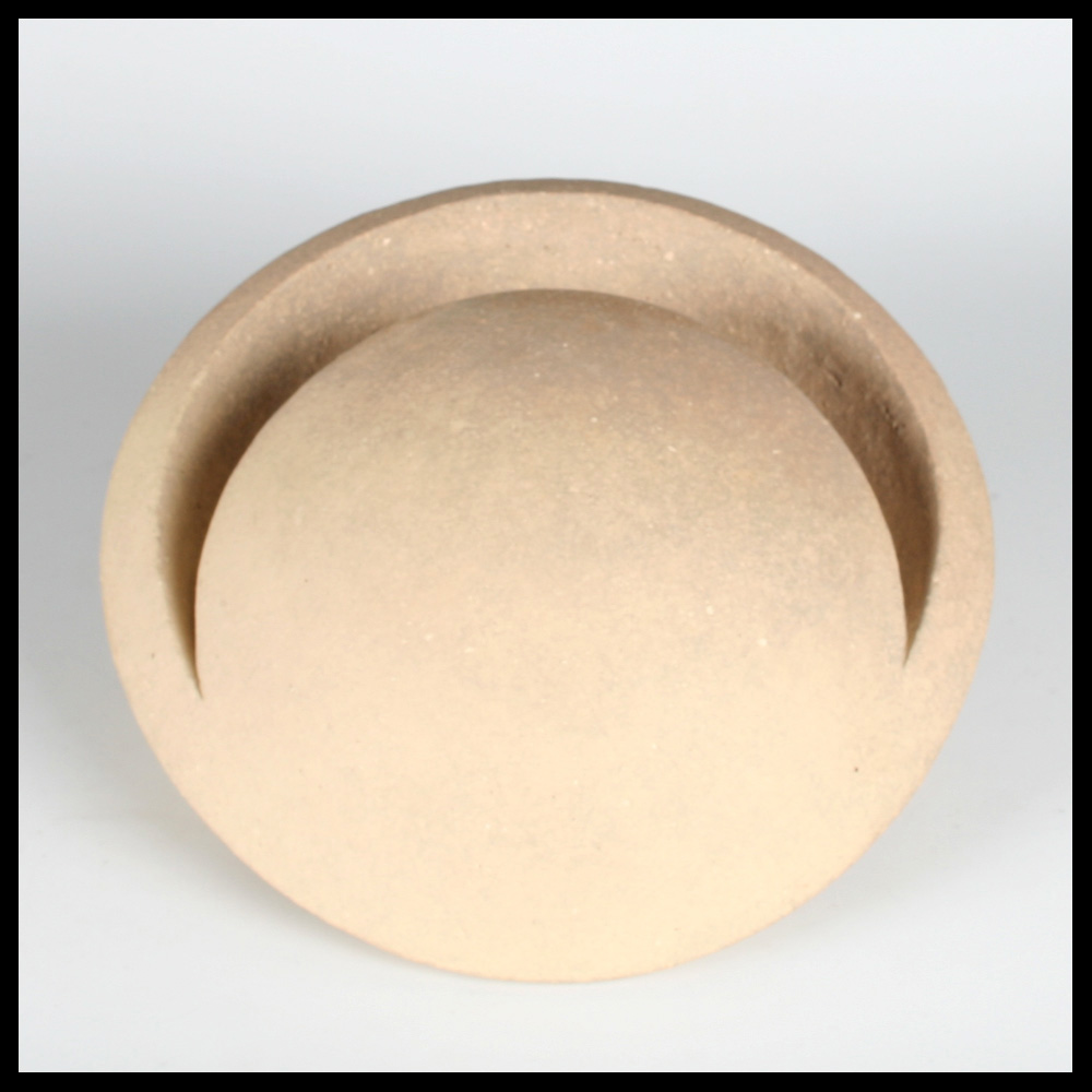 Veronika Pöschl (NL) – een platte afgeronde robuuste liggende discusvorm met openingen, met de hand gevormd, steengoed; aan een zijde een maanvormige uitsnijding, aan de andere zijde een ovale opening, oppervlakte met de lichte afdruk van de vingers, hoogte 14,5 cm. Dit stuk is in 1991 door de eerste eigenaren aangekocht bij Galerie De Witte Voet te Amsterdam.